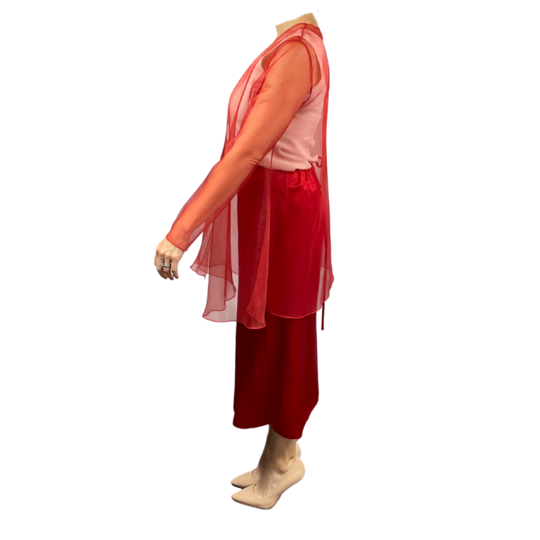 Fully lined with taffeta Model 2 is 5’7 wearing 3′ heels Bust 38 D/DD cup, Waist 27, Hip 38 *This is a sample and has been used in trunk shows, fashion shows and at events